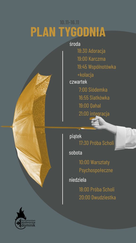 W tym tygodniu widzimy się na TEDzie Ola Sznel o podróżach, startujemy z Karczmą i kończymy tydzień warsztatami scholi z Krystianem Neściorem! Do zobaczenia w DA;)