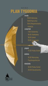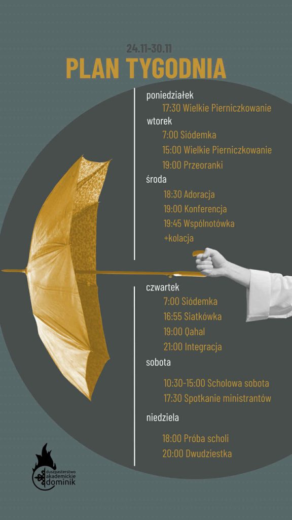 Plan tygodnia 13.10 – 19.10 W tym tygodniu widzimy się na TEDzie Ola Sznel o podróżach, startujemy z Karczmą i kończymy tydzień warsztatami scholi z Krystianem Neściorem! Do zobaczenia w DA;) Czytaj więcej » 12/10/2025