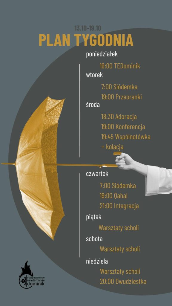 W tym tygodniu widzimy się na TEDzie Ola Sznel o podróżach, startujemy z Karczmą i kończymy tydzień warsztatami scholi z Krystianem Neściorem!Do zobaczenia w DA;)